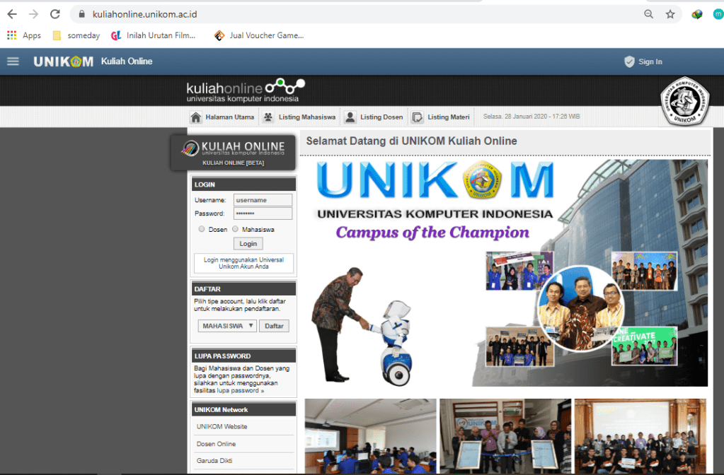 - Tampilan Awal Kuliah Online Unikom.